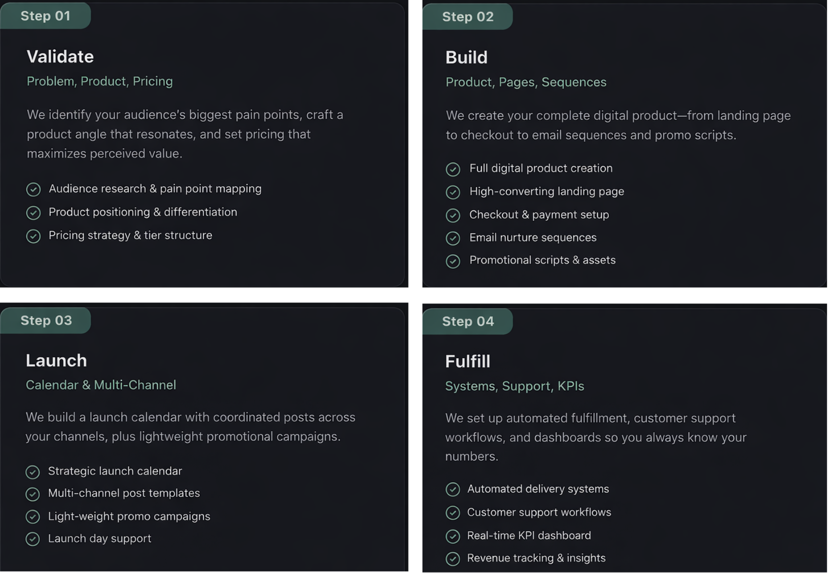 A proven four-step system we handle to turn your audience into revenue,